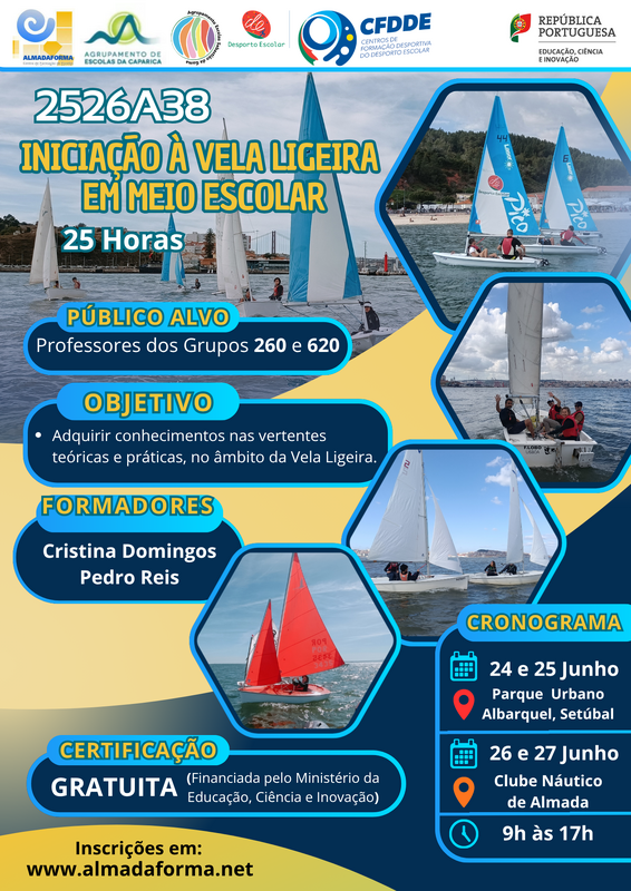 2526A38 INICIAÇÃO À VELA LIGEIRA EM MEIO ESCOLAR - Docentes dos grupos 260/620 dos Agrupamento de Escolas da Caparica, Almada, CFDDE AE Caparica, CFDDE AE Sebastião Gama .